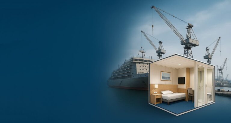 Complete range of certified marine interior materials and modular solutions for shipyards, vessel owners, and offshore operators worldwide